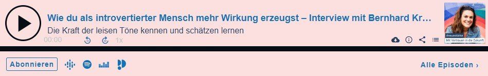 Wie sich Introversion äußert und wie introvertierte Menschen in einer lauten Arbeitswelt damit umgehen können, darüber sprechen Julia Peters und ich. Ich wurde als Experte für Introversion zum Podcast #neuestärke eingeladen, um diese und andere Themen zu beleuchten.
