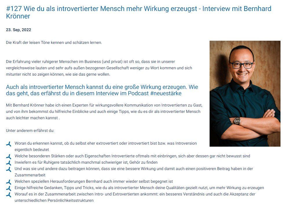 #127 Wie du als introvertierter Mensch mehr Wirkung erzeugst - Interview mit Bernhard Krönner